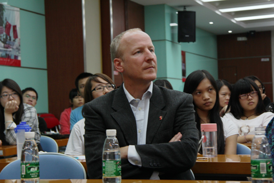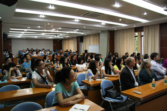 本网讯 10月23日,意大利语言文化周系列活动之“另一个声音”讲座在六教顺利举行。出席本次讲座的嘉宾有瑞士驻广州总领馆副总领事施宝鑫先生,意大利诗人法比奥·普斯特拉及其夫人。
