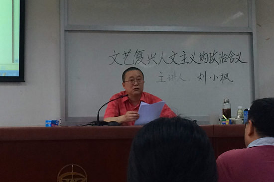 下午2点30分,讲座准时开始。讲座伊始,刘小枫教授展示了一段来自西方教科书中的有关文艺复兴的介绍,提出了对教科书中所谓的“西欧接受了古希腊和罗马的艺术和理念,并迫不及待吸收了它们......现代文明就此奠定”这一论断的质疑。