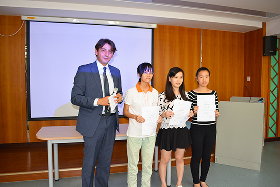 MBA教育中心306教室隆重举行。出席本次会议的有意大利驻广州总领馆领事白思诺(Massimo Baldassarre)先生,意大利驻广州总领馆文化处负责人施丽萍女士,外教Matteo Brandi老师以及麻豆在线