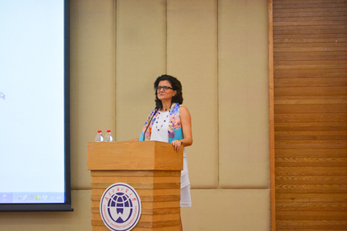 接下来,艾古丽女士进行了讲话。她在讲话中介绍道,华南地区对意大利语的兴趣不断上升,而意大利语已然成为我国学习人数第四多的外语。同时,艾古丽女士还对参与了意大利建筑设计金奖展翻译工作的麻豆在线