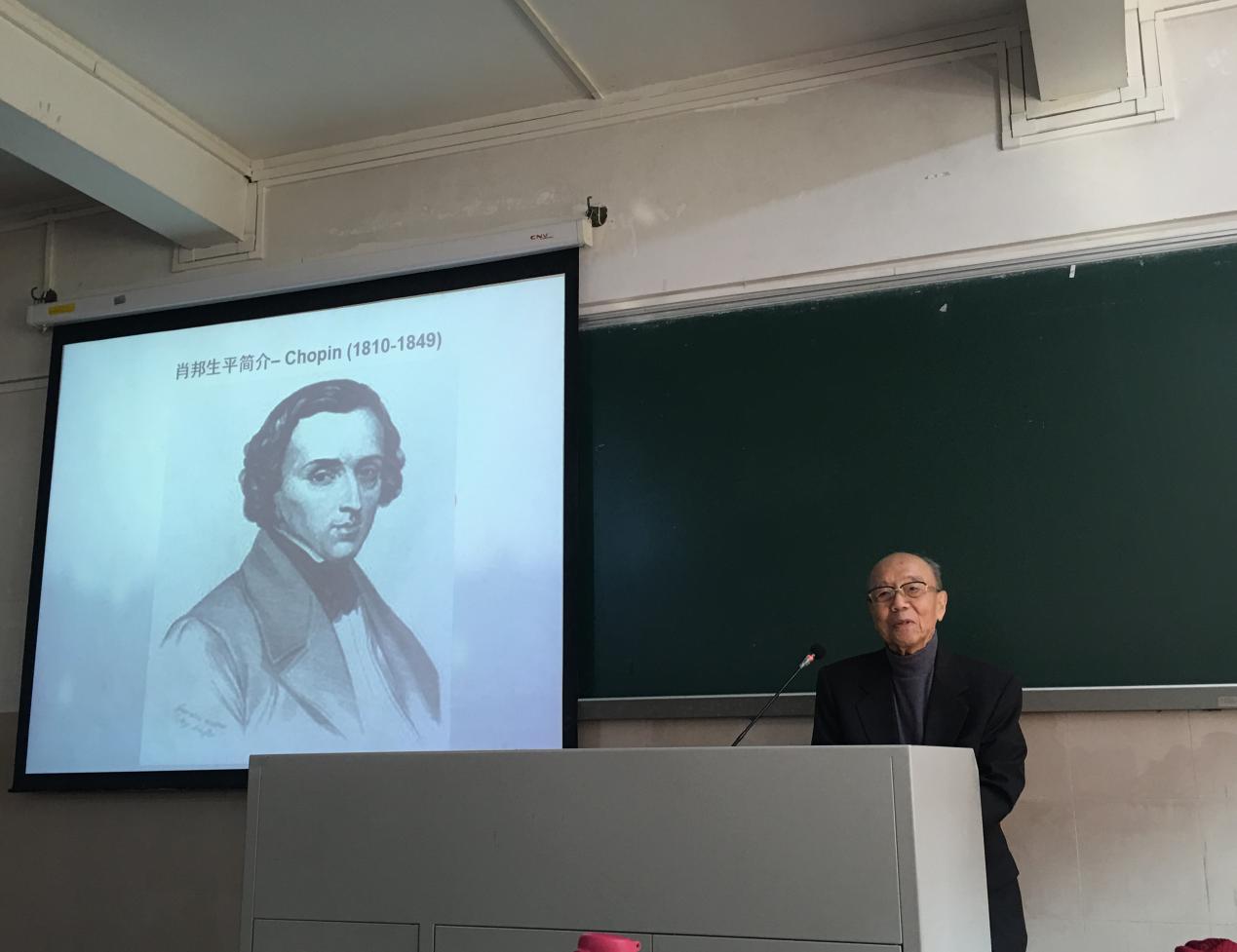 茅沅先生给大家播放了肖邦的经典即兴曲、夜曲、葬礼进行曲等,并亲自弹奏了玛祖卡、练习曲与雨滴前奏曲等优美乐曲。其中,音乐电影《一曲难忘》中的波罗乃兹和谐谑曲的演奏给大家留下了深刻印象。