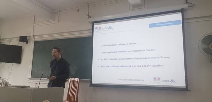 开展了一场主题为“Etudier en France—选择法国”的讲座。讲座由法语系主任叶剑如老师主持。法语系本科学生和硕士研究生参加了本次讲座。