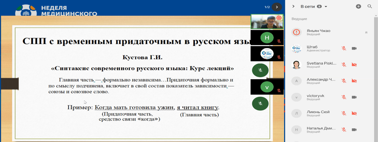 俄语系黄天德老师指导的两位研究生,2021级赵阳洋和2020级李伟均在本次会议上报告了自己的研究。赵阳洋的报告题为《心理语言学视角下的俄语时间复合句的汉译过程研究》,李伟的报告题为《中国大学生俄语名词心理词汇联想模式研究》。两位研究生的报告获得俄罗斯同领域专家的一致肯定与好评。