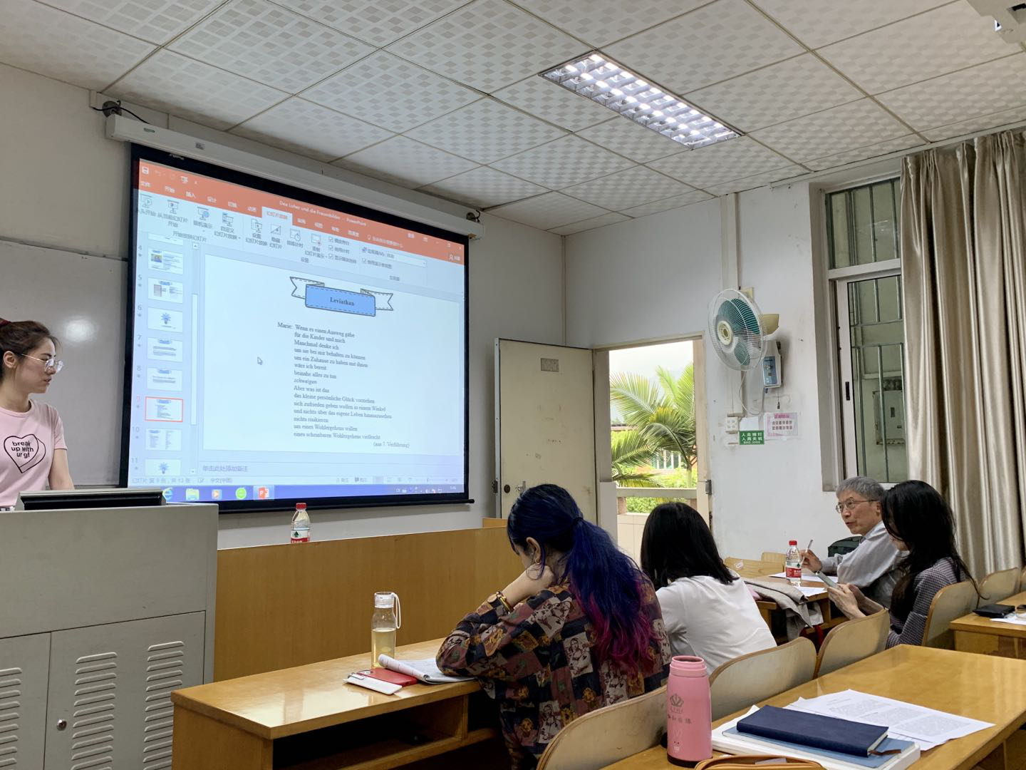 8日上午,卫教授还出席了德语语言文学专业研究生的师生共研课堂,聆听了德语系同学的课题研究报告并提出了宝贵的指导意见,为同学们的科研之路指引了方向。