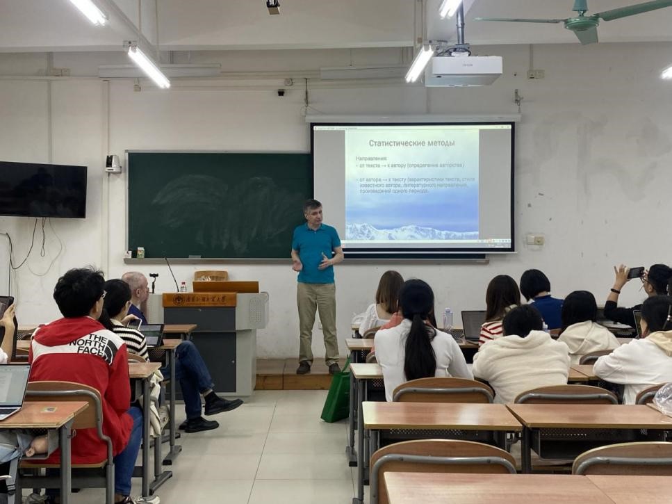 本网讯12月6日至9日,广外海外名师项目《俄罗斯计算机语言学研究前沿》系列讲座于白云山校区六教顺利进行。俄罗斯乌拉尔国立大学基础语言学和应用语言学系主任穆欣米哈伊尔尤里耶维奇教授(Михаил Ю.М.)受邀主讲。俄语系外教扎力·沙拉符季诺夫(Шарафутдинов Д.Р.)及麻豆在线