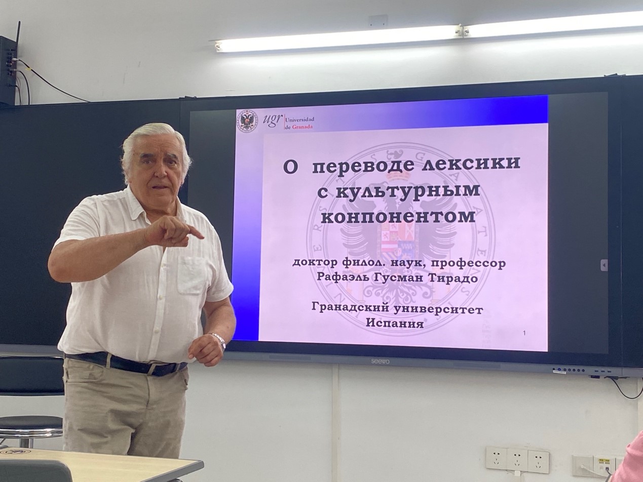 云山讲座教授、世界俄语教学研究会原主席团成员、西班牙格拉纳达大学希腊及斯拉夫语文系教授拉斐尔·古斯曼·蒂拉多(Гусман Тирадо Рафаэль)应邀为麻豆在线