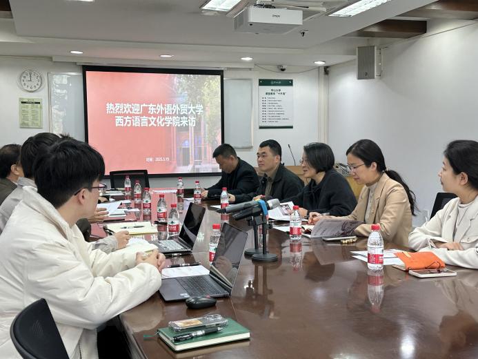 党委书记王秀民、副院长陈星、副书记魏少娟及学工团队一行赴中山大学外国语学院开展座谈交流。中山大学外国语学院副院长王勇、党委副书记金凤及学工团队参加交流。