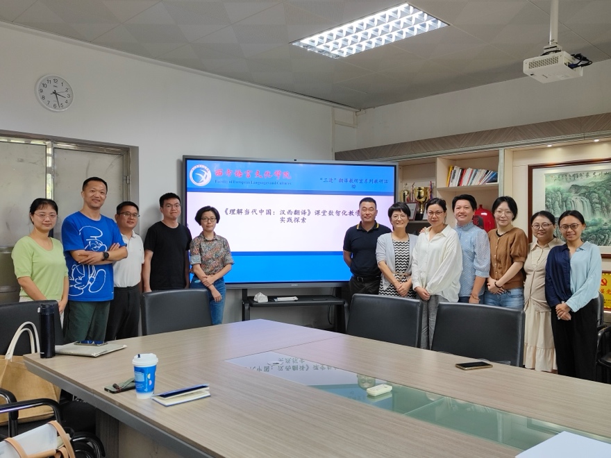 “三进”翻译课程教研室“《理解当代中国:汉西翻译》课堂数智化教学实践”分享会在学院会议室举行,来自学院多个系的教师出席会议,共同讨论数智技术在翻译课程中的应用。此次会议由教研室主任吕继群老师主持。
