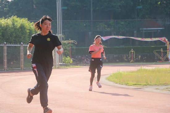 女子200米比赛的“战况”更加紧张激烈:经过了清早的热身,参赛的选手们都将自己的竞技状态调整到了最佳,在没有硝烟的“战场”上释放激情、全力冲刺。最终,葡萄牙语1701的冯瀚仪脱颖而出,拿下第一名。第二、第三名分别由法语1501的陈晓多和饶伟民获得。