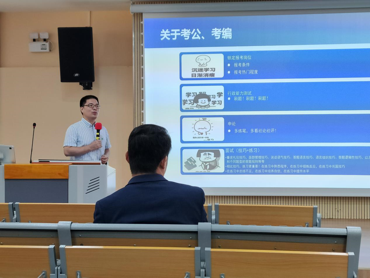 学生就业指导中心副主任林宏伟从实际遇到的毕业生的迷茫切入,向毕业研究生们提出问题:“就业,你准备好了吗?” 接下来,他给同学们分析了最近几年的宏观就业形势,对广外毕业研究生的两大毕业去向:考公考编和进企业就业,分别做了有针对性的指导。考公考编方面,从选岗位到做行测、公基、申论的题目,再到关注时事培养政治敏感性,以及选调生路径的介绍,给同学们讲清楚了考公考编的机遇和挑战。企业就业方面,带领同学们对比了大小企业各自的利弊,他特别指出,除了大企业之外,增长快、有核心竞争力的细分行业龙头企业也值得重点关注。他还给同学们传授了制作简历、参加面试的要点,这都是多年学生就业工作沙里淘金留下来的宝贵经验,非常实用。他祝同学们“掌舵自己的人生”,航行既快且远。讲座后半段,林老师解答了同学们关于三方协议填报、薪资水平谈判的问题,请在场的同学关注“广外就业”微信公众号,并鼓励研究生去咨询就业相关问题。