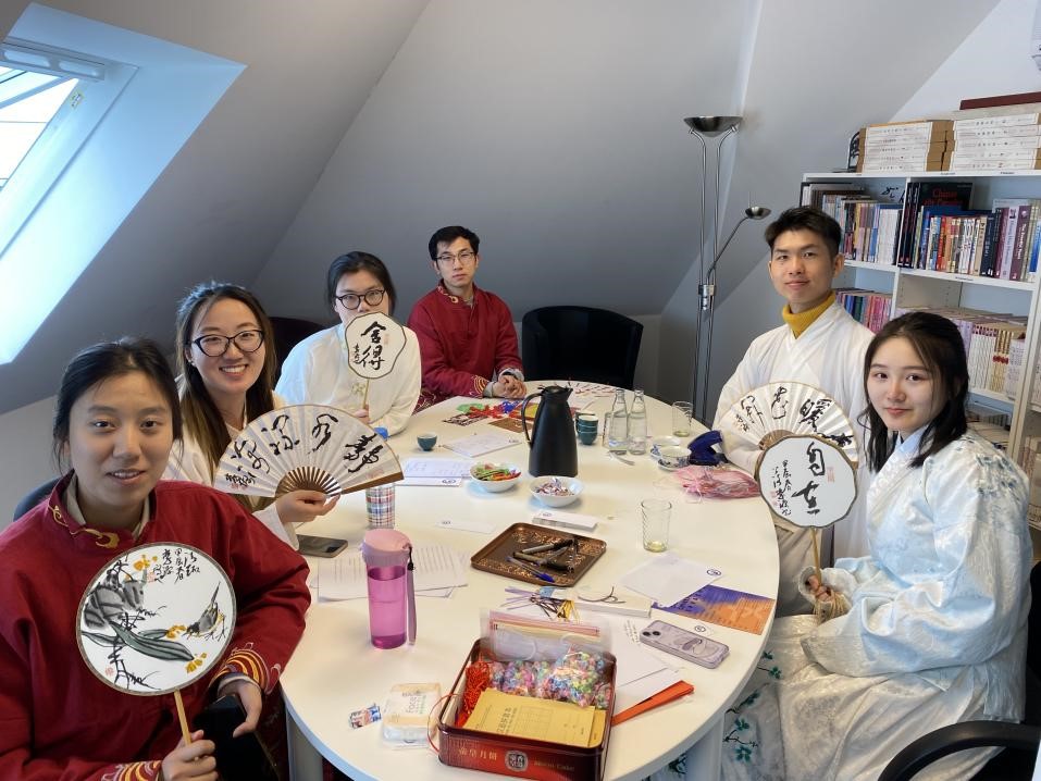 张赫菱(右四)等为德国朋友分析各自对应的中国生肖汉字