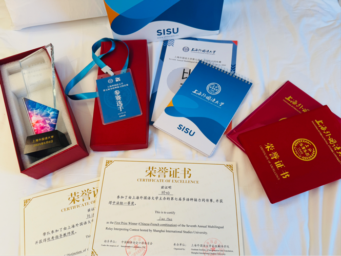 参赛。凭借过硬的专业素养和出色的临场发挥,矫好同学勇夺中法同传组别全国一等奖,张安妮同学获得优秀奖。
