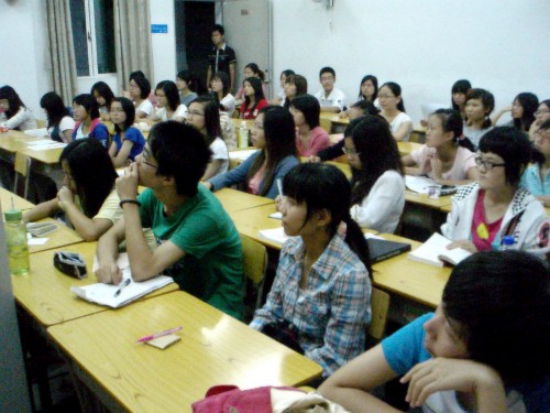 智障人士到底是怎样的,老师做了详细的介绍——热情,直率,重感情,思想纯真,交往技巧缺陷,语言表达能力差,理解能力不足,记忆力不好,注意力不集中。我们可以看到除了生理,智力上的缺陷外,智障人士更多表现出的,是人性更本更真的情感。老师还讲述他们平时生活中与智障人士相处的故事,有尴尬,有摸索,更多的是感动和惊喜。在老师的讲述中,同学们看到了智障人士的另外一面,正如老师说的,他们很可爱。