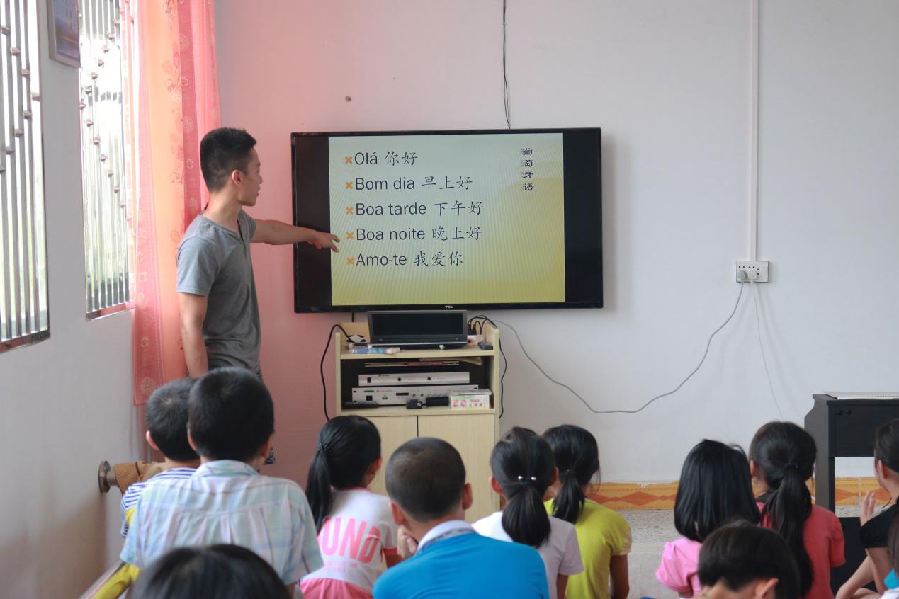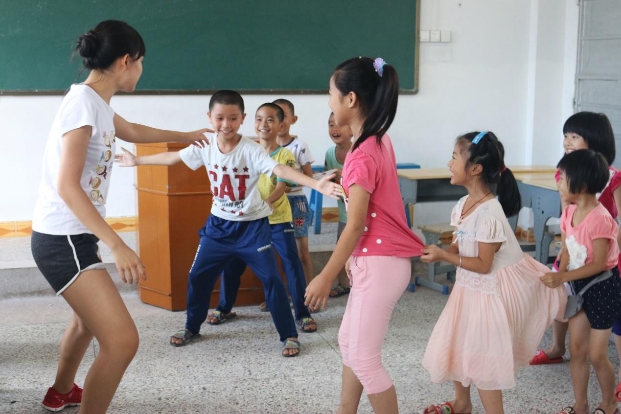 在学校,哥哥姐姐是老师的学生;在这里,哥哥姐姐是学生的老师。教学经验并不丰富的哥哥姐姐,经过前几日的实践和不断改进,也在逐渐成长。如早上的英语课,老师通过生动的短小的故事告诉大家“不是每一个How are you?”都得用“I am fine”来回答,引出如何用英语和别人问好的知识点。其中,”perfect!”这一枯燥的单词,在老师的“完美“姿势下,显得有趣,好记;并不懂潮汕话的小游老师在上一节的在一班的英语课时,在孩子们突然联想到的“Awesome!” 与潮汕话方言中的“剪刀石头布”谐音”O Do Som”指引下,将其更好地教予其他孩子。老师们在教孩子知识的同时,一定程度上也在逐渐增长教学能力,双向流动,都是互相的“老师”