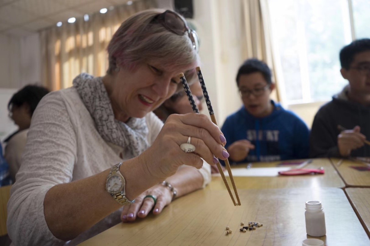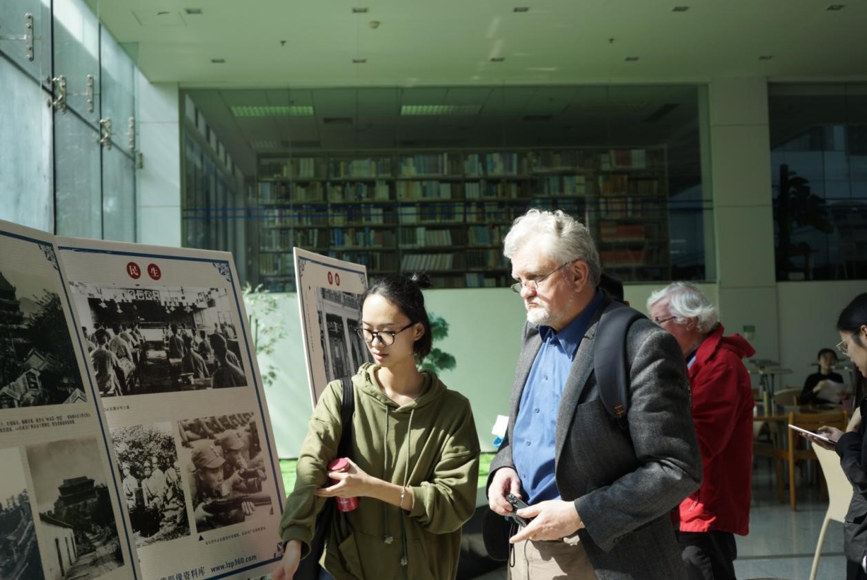 贵宾厅会见代表团来宾,包括法兰克福市政府外办主任Hechler先生、法兰克福市荣誉市长Möbius先生和市议员Ochs先生。接着市民代表团在第四教学楼与德语系师生进行交流活动。德语系学生为市民代表团献唱了展现中国古典美的歌曲《青花瓷》,对他们的到来表示热烈欢迎,代表团的市民也为同学们精心准备了礼物。