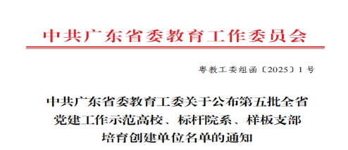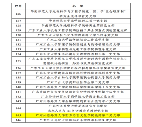 近日,中共广东省委教育工委公布第五批全省党建工作示范高校、标杆院系、样板支部培育创建单位名单,西方语言文化学院教师第二党支部入选“全省党建工作样板支部”培育创建单位。