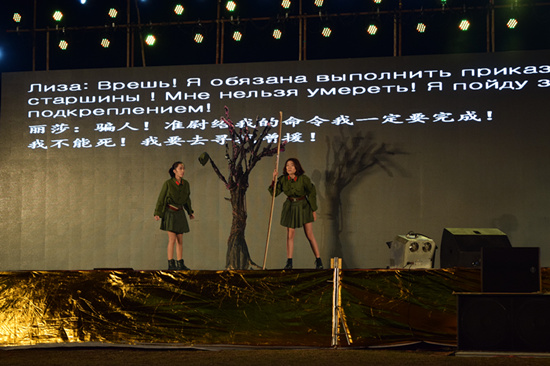 俄语系同学表演俄罗斯经典话剧选段《这里的黎明静悄悄》
