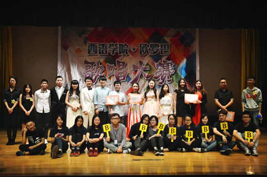 第九届欧罗巴文化节之“浮浪诗人的赞歌”小语种歌唱大赛在六教报告厅举行。担任本次歌唱大赛的评委的有学生工作处李丽人老师,校艺术团指导老师涂颖老师和学生就业指导中心的许俊浩老师,他们都具有多年的歌唱和舞台表演经验。本次大赛还邀请了来自其他兄弟学院的九位大众评委。