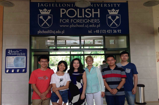 在波兰普乌图斯克人文学院参加暑期班的五名学子