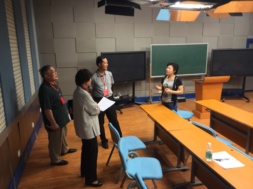 评估工作于早上九点在法语系办公室正式开始。专家们首先听取了法语系主任叶剑如老师的汇报。叶老师仔细梳理了法语专业五十年的发展历程,从专业建设、师资队伍、培养目标、教学改革、学生实习实践及国际交流等方面全面地介绍法语专业前进的每一步。按学校教务处要求,法语专业深刻剖析了存在的问题和困境,请专家们提出宝贵意见。随后,专家小组走访了教育技术中心,分组听课,查阅了论文试卷等资料。