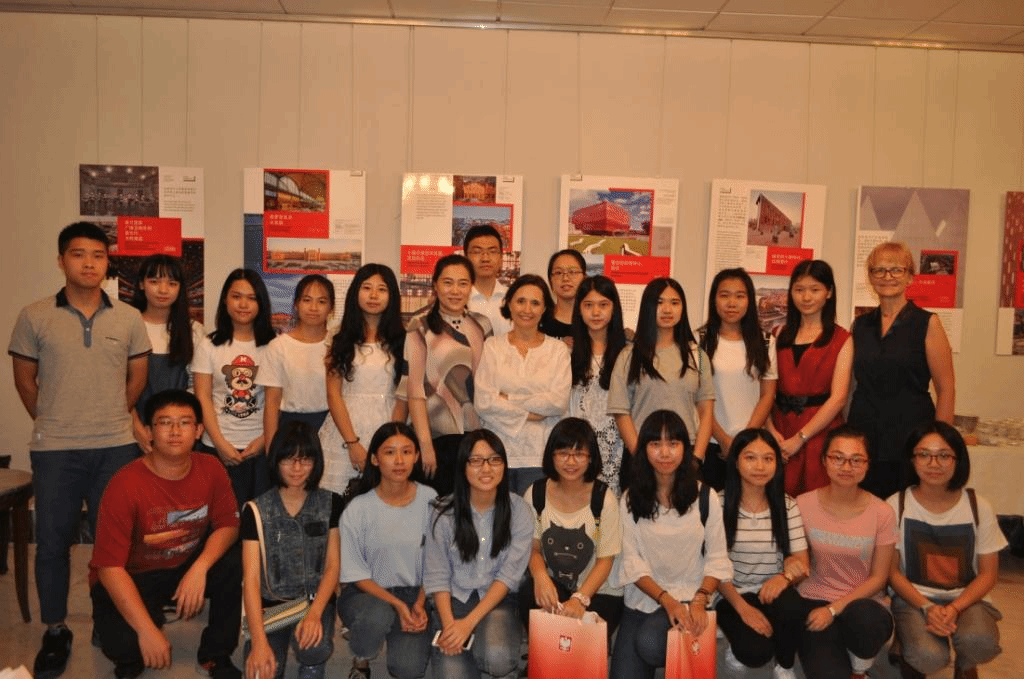 波兰语系主任茅银辉、外教阿格涅什卡•雅辛斯卡(Agnieszka Jasińska)以及张和轩老师带领波兰语系全体大一学生赴往沙面参加波兰驻广州领事馆举办的开放日活动。