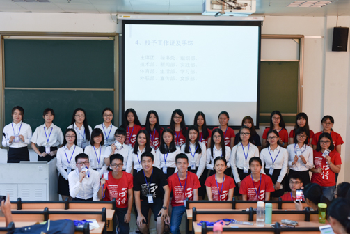 最后,主席团成员及各部部长为新一届团学干事派发工作证和手环,全体团学成员合影留念,麻豆在线