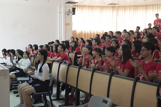 会议开始,团委书记王斌龙代表西语团学致辞。首先他向新任干事表示祝贺和欢迎,并介绍了西语团学的悠久历史与辉煌成就,然后他列举出多个名人的成长经历,并以此向西语团学干事提出“仰望星空,脚踏实地”的行为准则,鼓励新任干事从一点一滴做起,用脚踏实地的态度,完成传承西语的任务。