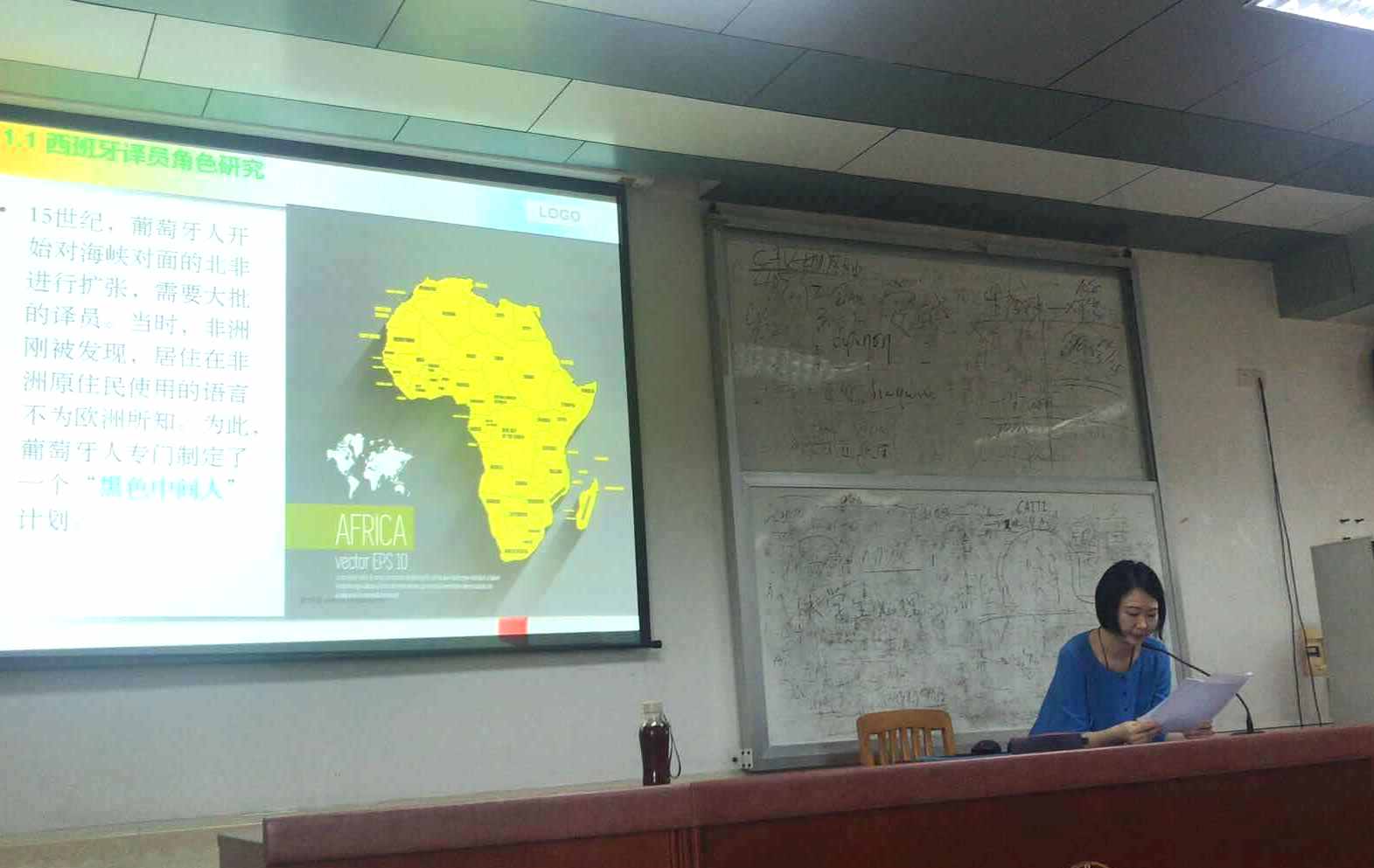 本网讯 2018年6月21日,西班牙语系讲师张梦璐博士以“多维度理论视角下的译员角色研究”为主题的“前沿讲座”,在北校区第4教学楼424教室顺利举办。