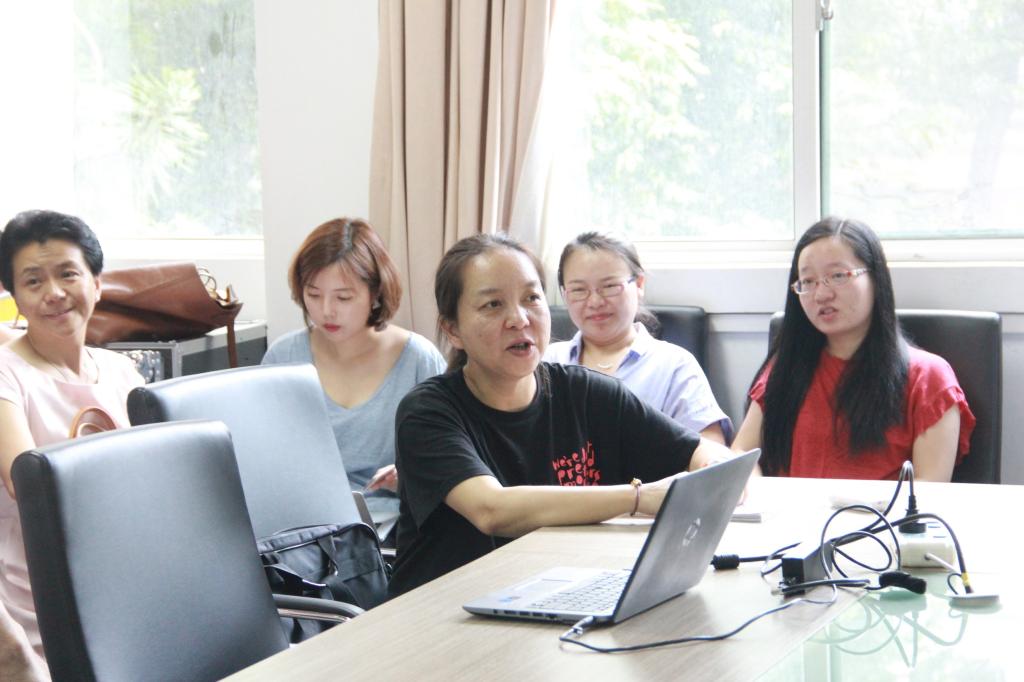 德语系的滕奕丹老师为全体与会人员详细地介绍了德语系两个省级实习基地的创立和建设过程。“一汽大众佛山实习基地”和“揭阳中德金属实习基地”始于2013年,先后获评“校级实习基地”、“校级优秀实习基地”和“省级实习基地”的光荣称号,能够接纳的实习人数是德语专业每年招收人数的1.5倍,学生的实习实践工作受到用人单位的高度好评。作为一个小语种专业,德语系能够创建优质的实习基地,为学生开设精彩的实践课程,组织高效的实践活动,是件非常不容易的事情。首先是得益于地区经济发展和国际经贸合作的需求,其次是离不开学校和学院相关政策和制度的支持,最关键的还有专业教师无私地付出和全程的跟进。滕老师回忆起刚刚开始和企业谈合作、建基地时候的辛苦。除了和企业商讨合作细节,还要关注学生在实习过程中的人身安全、日常饮食......实习基地的建设,远远超出了专业教师日常教学工作的范围。但是,这些付出和投入都是值得的。通过近五年的建设,德语系成为了学校唯一一个拥有两个省级实习基地的语言教学单位,而德语系也在此基础之上获评“广东省特色新兴专业”,并且在与企业的合作过程中学到了很多优秀的管理经验。