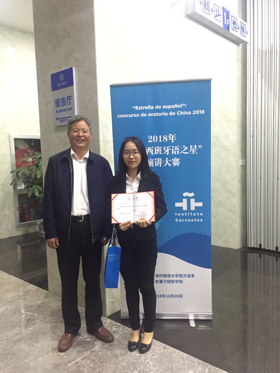 2015级西班牙语专业学生李冬洁在全国57所院校,382名选手之中脱颖而出进入决赛并在决赛中荣获一等奖。