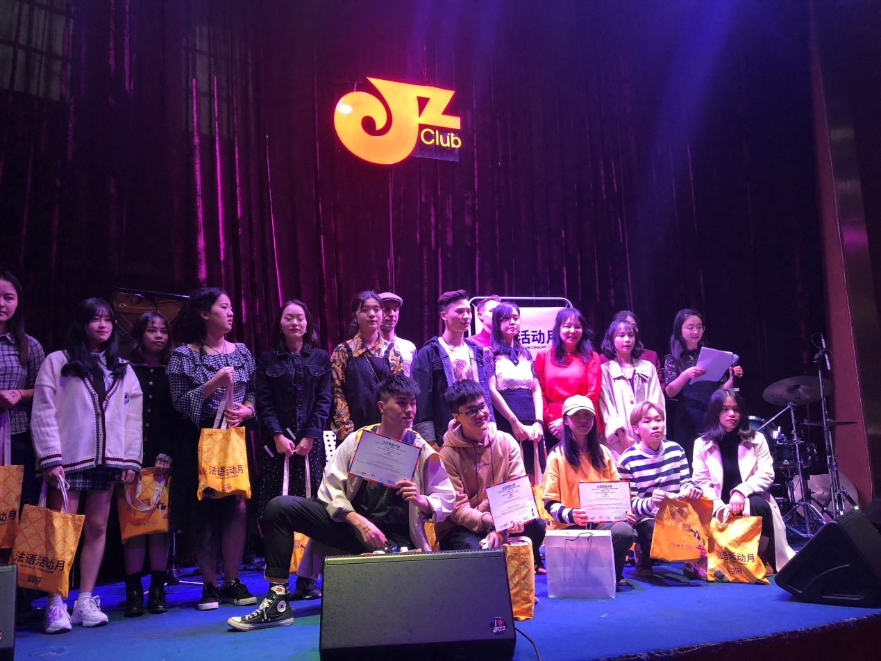 3月16日下午14:30,本届法语歌唱大赛华南赛区半决赛于广州市珠江琶醍啤酒博物馆的JZ Club 举行,汪亿萱同学以一首难度较高、语速较快的法语说唱歌曲« Dommage »征服了现场的评委和观众,勇夺半决赛冠军。法语说唱歌曲是一把双刃剑,它特点鲜明,比赛中容易带来优势,但必须很好的掌握语言才有可能驾驭,这对语言的熟练程度提出了很高的要求。而熟练掌握语言,也正是法语歌曲比赛的目的之一。最后由法国驻广州总领事周丽君女士亲自为汪亿萱同学颁发奖状。