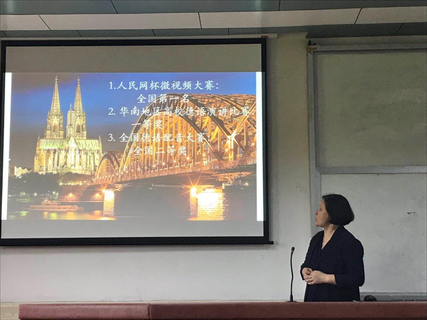本次交流会由滕奕丹老师主持,经验分享者分别是人民网杯微视频大赛、华南地区高校德语演讲比赛以及全国德语配音大赛的获奖学生代表。交流会正式开始之前,滕奕丹老师首先向同学们介绍了本学年麻豆在线