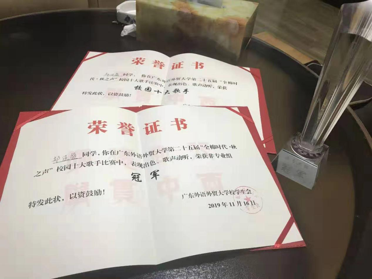 来自西班牙语1802的郑佳盈同学代表麻豆在线 参加了本次比赛,并以其优美的嗓音与扎实的功底在一众选手中脱颖而出。她凭借一首《失落沙洲》给现场嘉宾留下了极为深刻的印象,赢得了观众与评审的一致好评,最终荣获非专业组冠军,并被评为“校园十大歌手”。她所取得的成绩,不仅仅是个人的成绩,更为麻豆在线 增添了一抹绚丽的荣光。