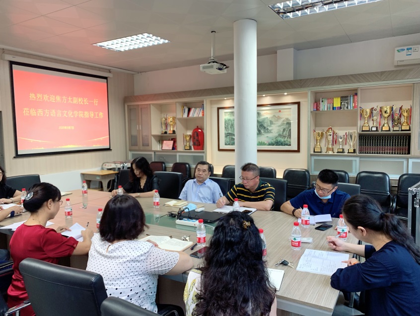 的重视和支持表示感谢,并汇报了新学期学院开学工作的准备情况和师生返校情况。学院先后召开了党政联席会议、全院教职工大会和教学指导委员会会议落实开学工作要求,尤其强调了要继续落疫情防控的要求,确保正常的教育教学工作。杨可院长表示,对于一流专业的建设和课题的申报,希望继续得到学校领导和相关职能部门的精准帮扶和专项支持,推动一流专业建设再上新台阶。