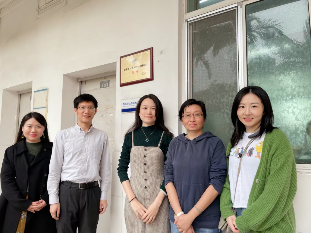 调研。德语系系主任卢铭君教授,德语系林璐副教授代表德语系进行了交流。本次交流由陈琦教授带队,孟小果和严佩琦两名德语教师和三名研究生参加。双方就一流专业建设、学生论文辅导、课程思政建设、学生心理辅导进行了交流,并针对两校的交流与发展、学生与师资的培养等话题进行了充分的探讨。
