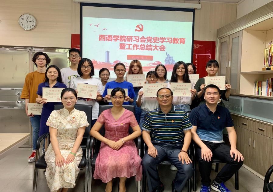 召开党建研习会党史学习教育暨工作总结大会,学院党委书记敖湘晖、副书记陈华荣,院办主任谢石顺、组织员倪娉婷、研习会学生共计16人参与,倪娉婷主持本次会议。
