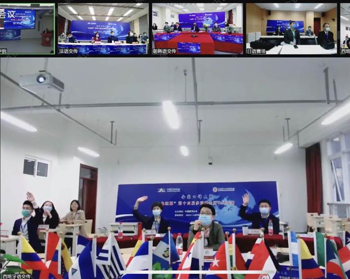 外,其他进入西语交传复赛的选手分别来自北京第二外国语学院、北京外国语大学、北京语言大学、深圳大学、上海外国语大学、外交学院、南京大学、人民大学、四川外国语大学、苏州大学等高校的西班牙语语言文学或高级翻译专业,竞争十分激烈。初赛、复赛和决赛均以交替传译的形式进行,包含中译西和西译中两个部分,选手根据录音音频进行翻译,材料内容与中国共产党建党一百周年这一历史事实紧密结合,着重于材料的思政性,力求对外讲好“中国故事”。在翻译过程中,选手们表现出了自己对于时事的了解、对中外国国情的关切,这一点受到了评委老师的肯定和赞扬。