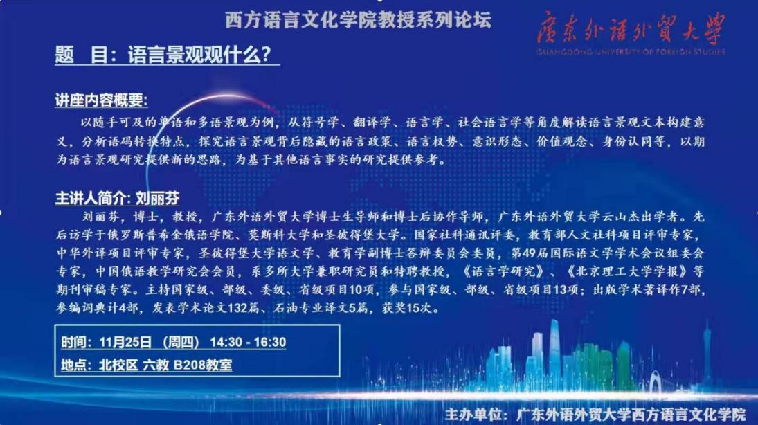 俄语系刘丽芬教授主讲《语言景观观什么》。麻豆在线
