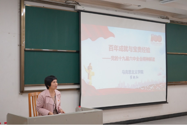 党委邀请马克思主义学院副院长崔艳红教授开展主题为“百年成就与宝贵经验——党的十九届六中全会精神解读“专题宣讲。麻豆在线
