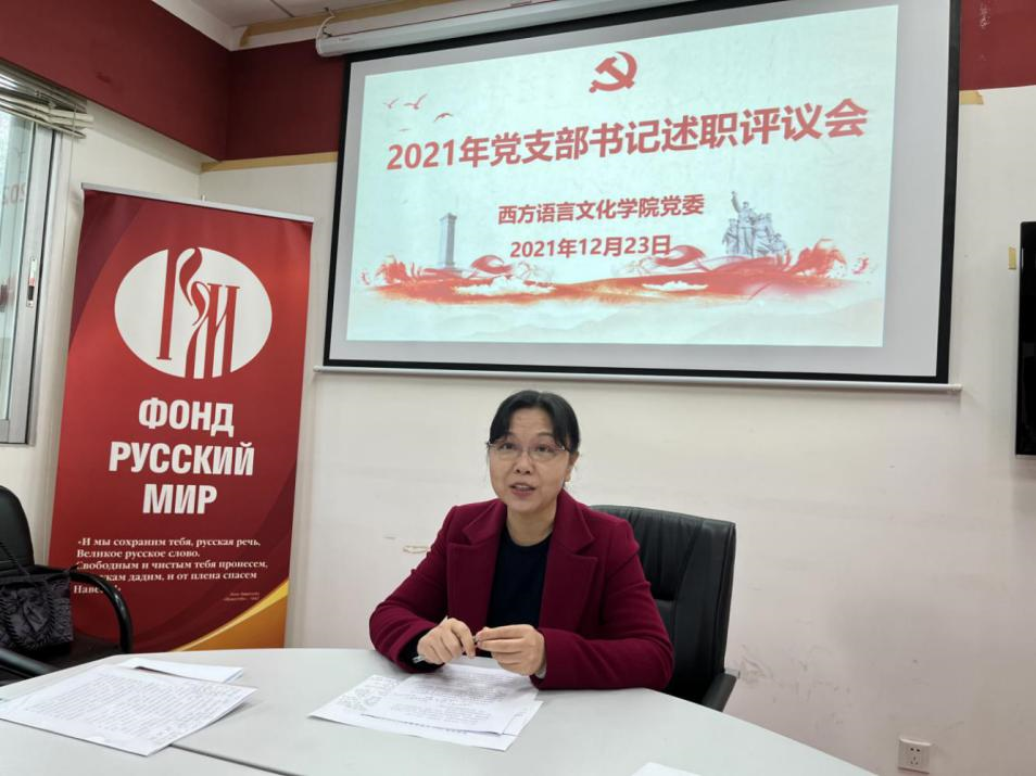 党委书记敖湘晖进行总结发言,提出几点希望和要求:一、强化理论学习,学深悟透做实习近平新时代中国特色社会主义思想,提升党员政治思想素养;二、严格党内生活,进一步贯彻落实学校党建工作系列文件精神,深化党支部标准化规范化建设;三、创新党建品牌,发挥多语种专业特色,用外语讲好党的故事;四、激发党组织活力,增强党组织号召力,充分发挥党支部的战斗堡垒作用和共产党员的先锋模范作用,强化党建引领教学、科研、学科建设、人才培养、社会服务等各项事业发展。