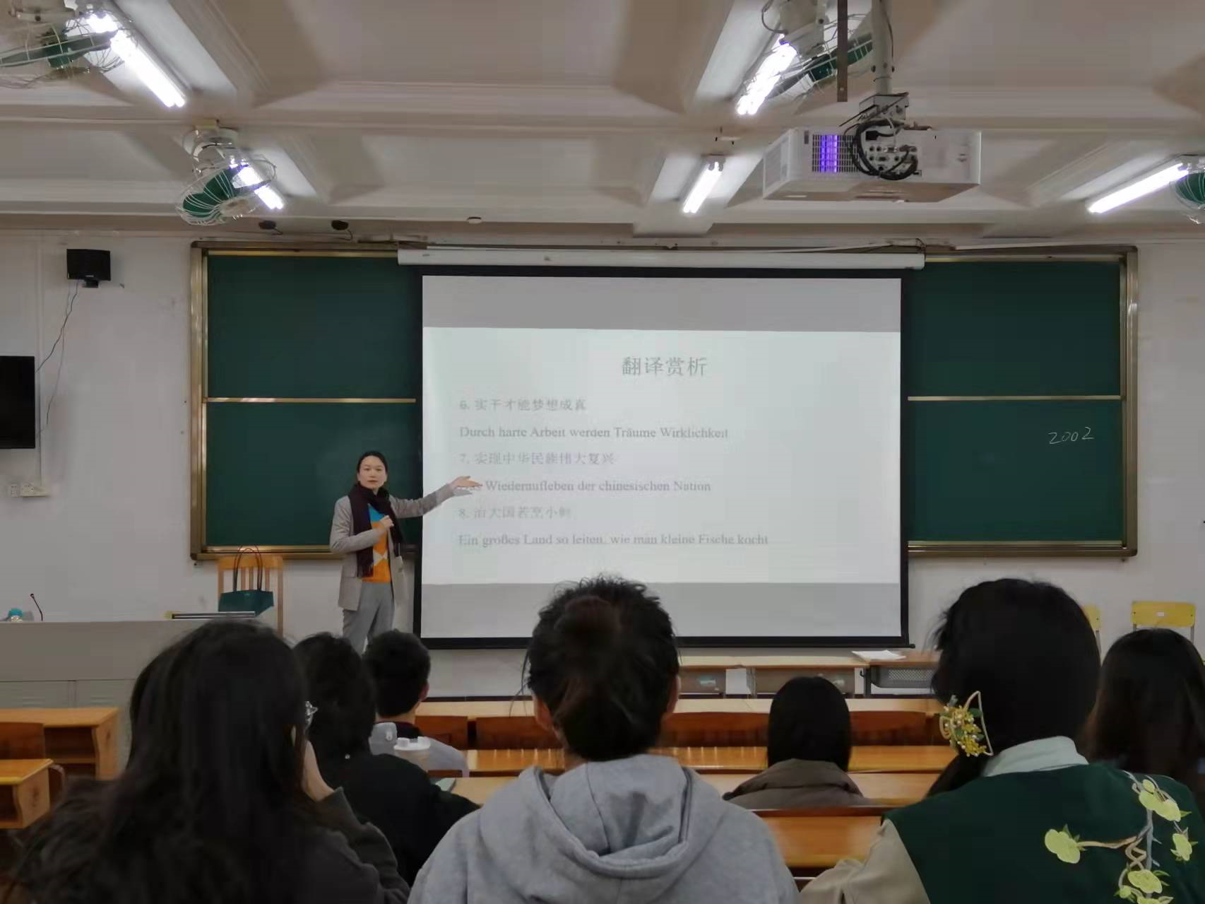 德语系在北校区二教114举行讲座——《习近平谈治国理政》中德翻译赏析与学习。主讲人为卢铭君教授与崔涛涛老师。