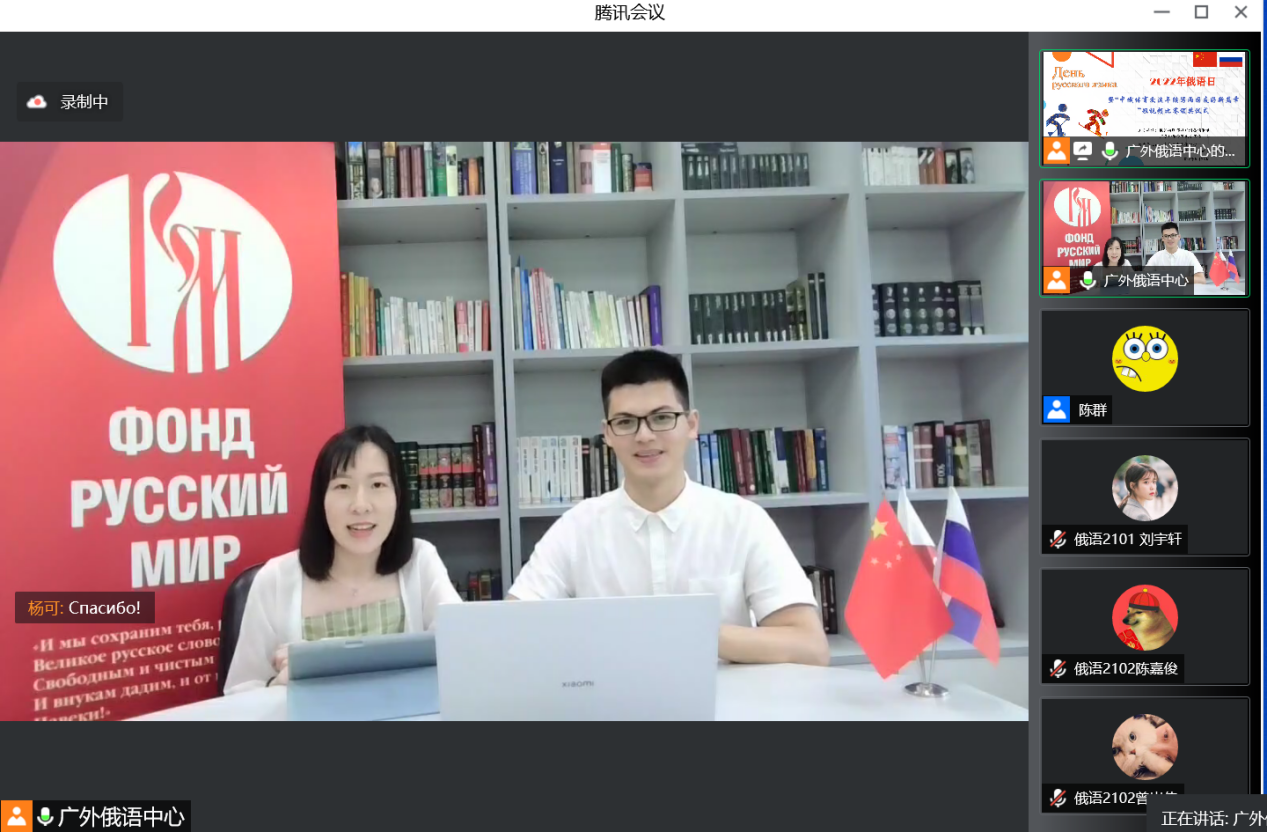 南国商学院、广州外国语学校、佛山莘村中学等学校的150多名师生代表和其他俄语爱好者观看了线上直播。