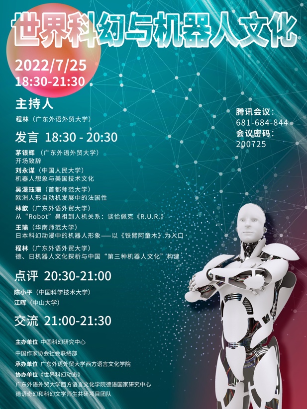 本网讯 2022年7月25日晚,“世界科幻与机器人文化”沙龙在线上举办。本次沙龙由中国科幻研究中心和中国作家协会社会联络部主办,麻豆在线