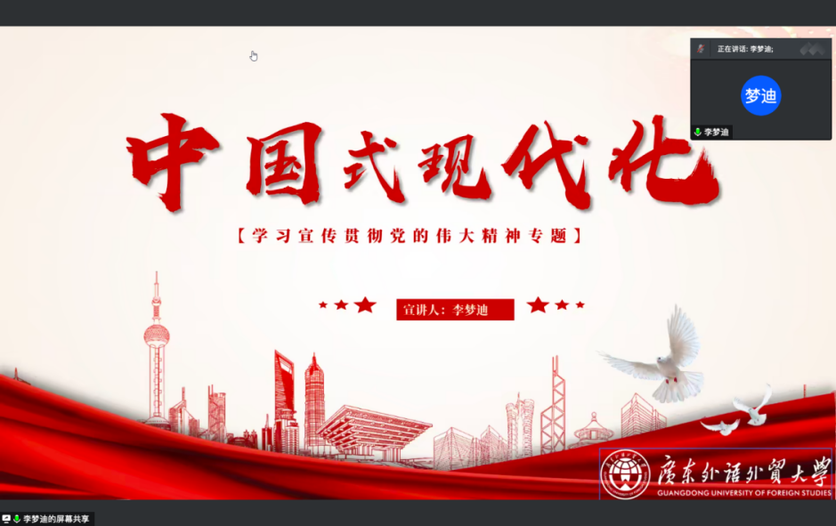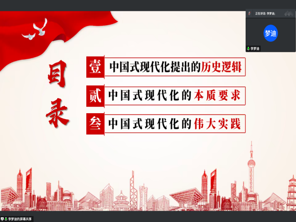 李梦迪围绕“中国式现代化”主题,从中国式现代化提出的历史逻辑、中国式现代化的本质要求、中国式现代化的伟大实践三个方面进行了深刻阐述和详细解读。