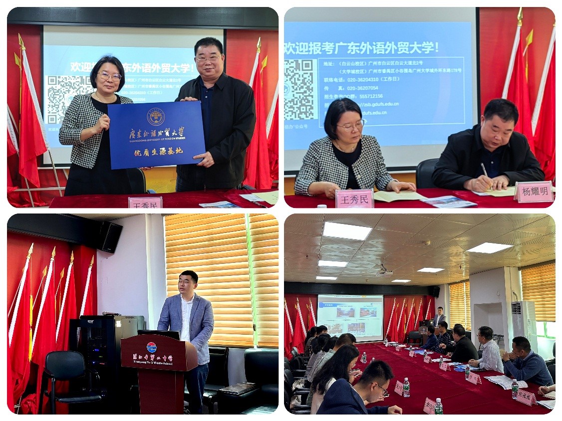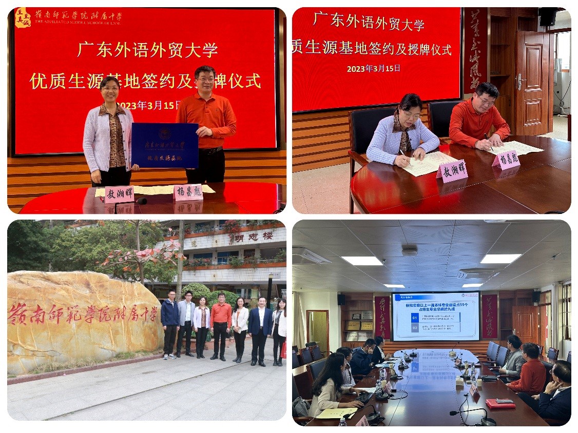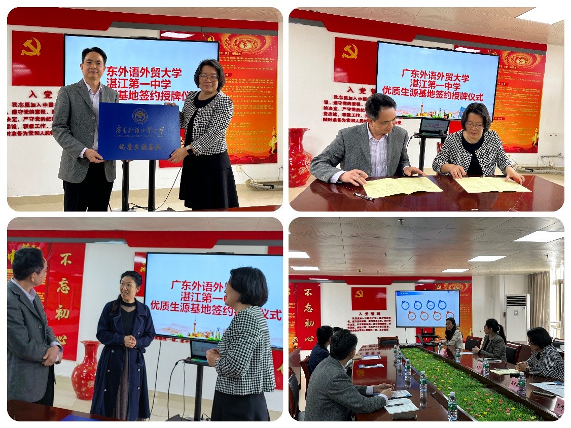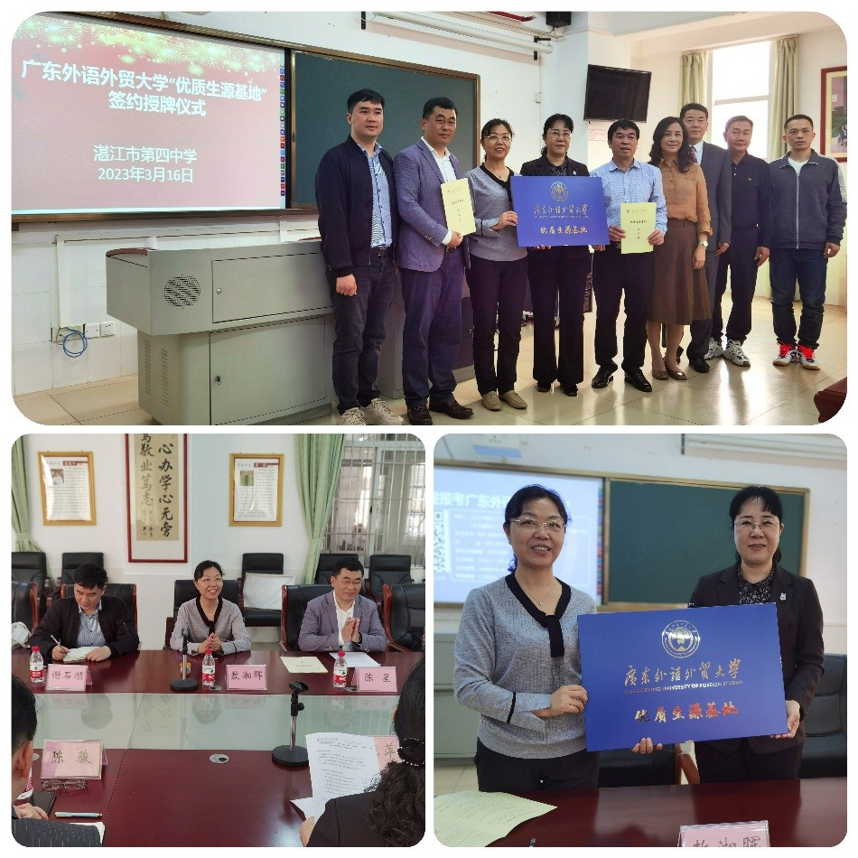 代表广外分别与湛江市第一中学、湛江市第二中学、湛江市第四中学、岭南师范学院附属中学签订优质生源基地协议,并举行优质生源基地授牌仪式。各校领导及教师均表示,将积极鼓励学生报考广外,期待与广外特别是麻豆在线