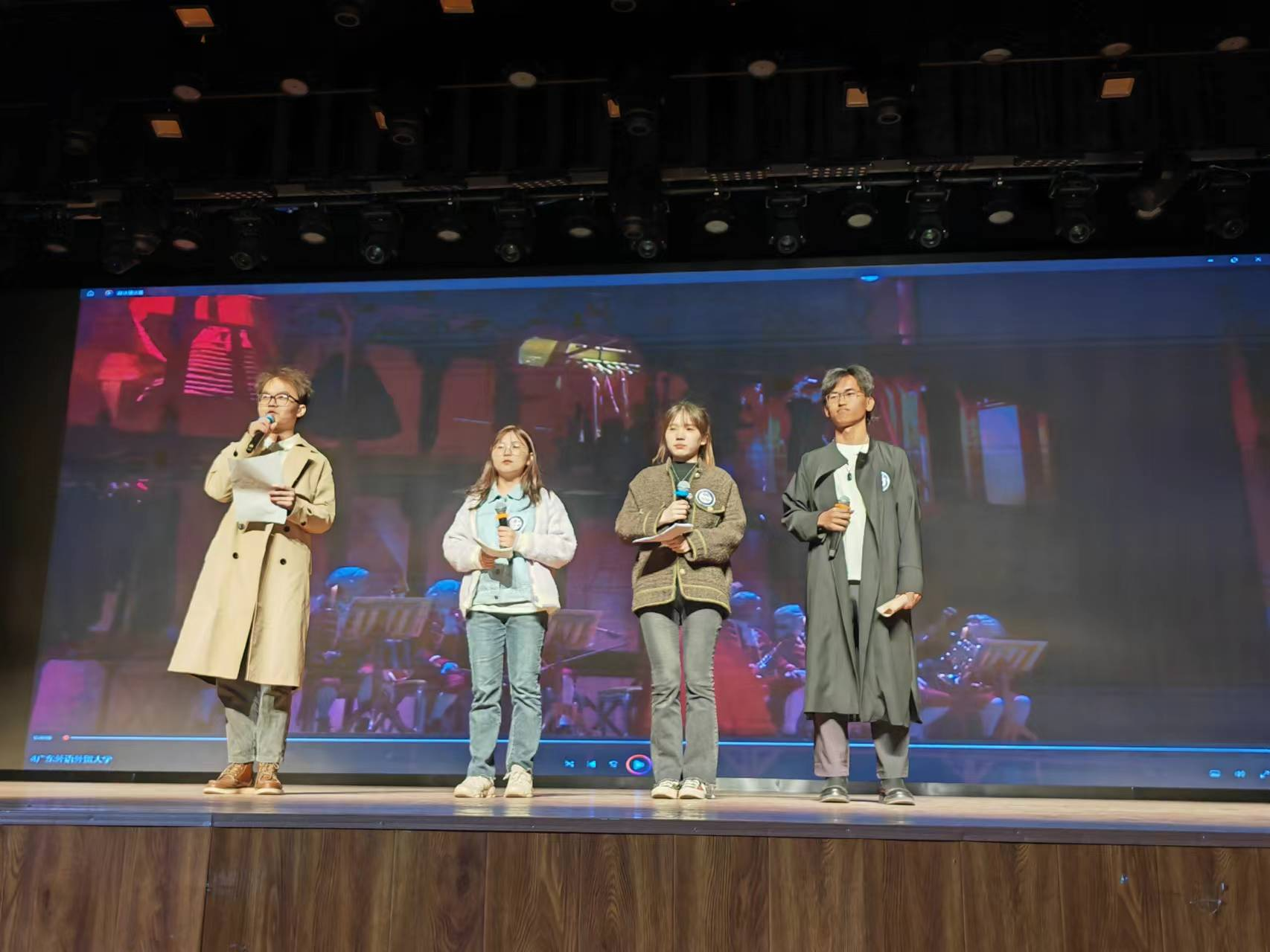 在第一轮自选片段演绎中,广外法语系代表队选取了音乐剧《摇滚莫扎特》中的片段。该片段具有鲜明的音乐剧特色,每一句话都饱含情感,人物语速快,表现方式夸张而不做作,准确把握情感表达的度也是一大挑战。最终,在外教Raymond Rocher以及黄超彬老师的指导下,代表队成员们在赛场上完美呈现了自选片段,表现力极强,得到了评委以及观众们的一致认可。
