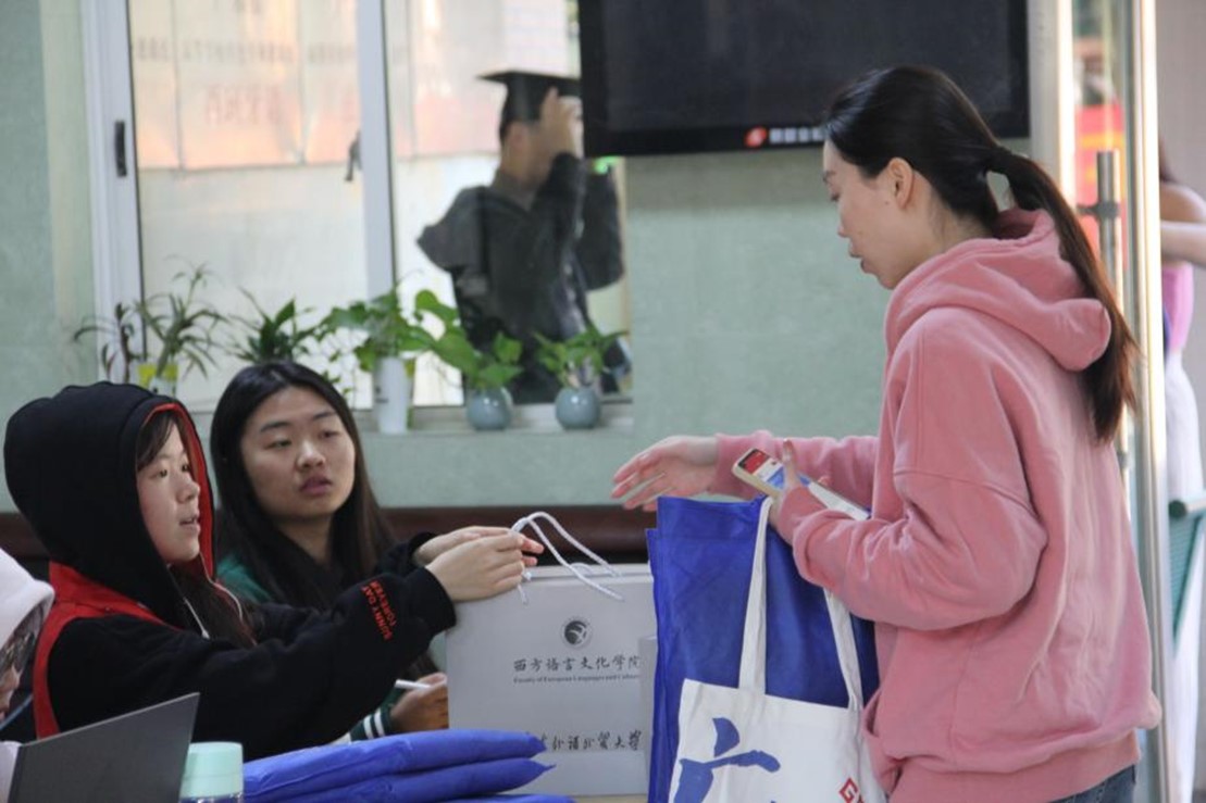 志愿者分发学位服和纪念品