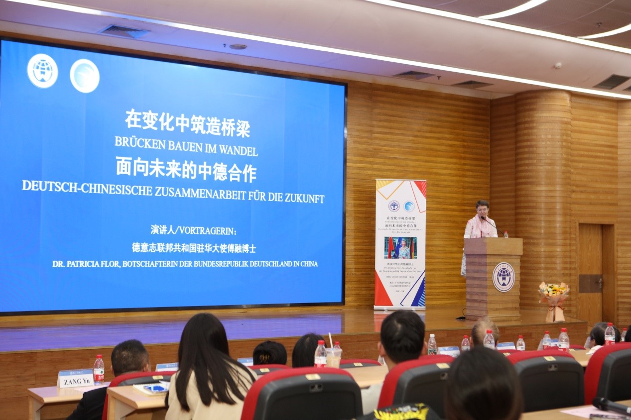 傅融大使表示,广外是中国一流的高等学府,以培养高素质人才、和国际接轨而闻名,与德国高校及其交流项目有着紧密联系。她认为,在当今世界我们既面临新冠肺炎疫情、气候变化等挑战,又迎来数字技术和人工智能等机遇,希望中德两国在变化中筑造桥梁、携手合作,共同献出一份力量,以保障更好的未来。