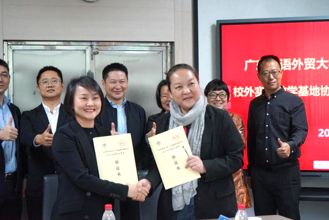 院长杨晓敏、党委书记王秀民等与比亚迪人力资源处总经理、广外94级西班牙语优秀校友王珍团队一起参加了仪式。仪式由王秀民主持。