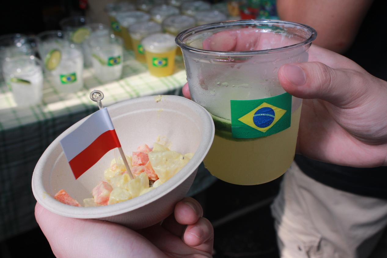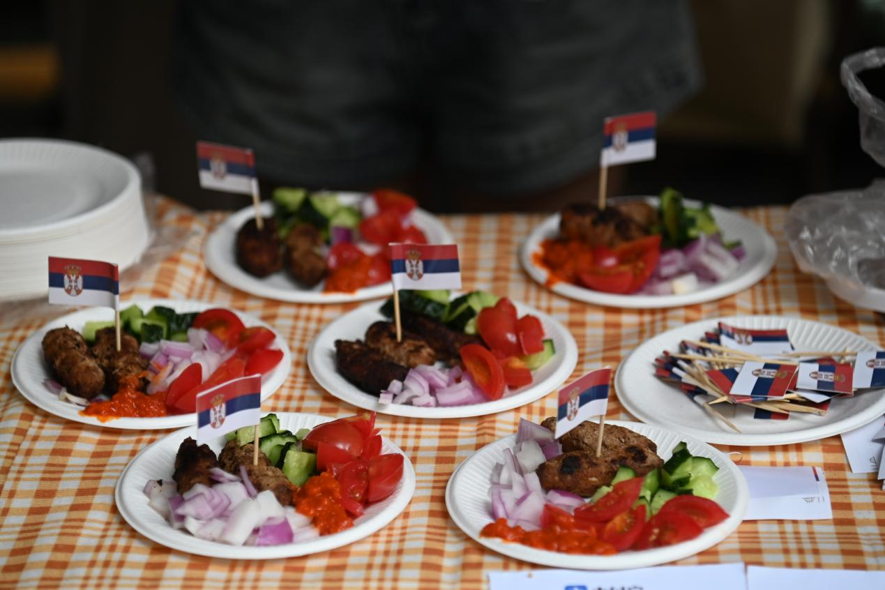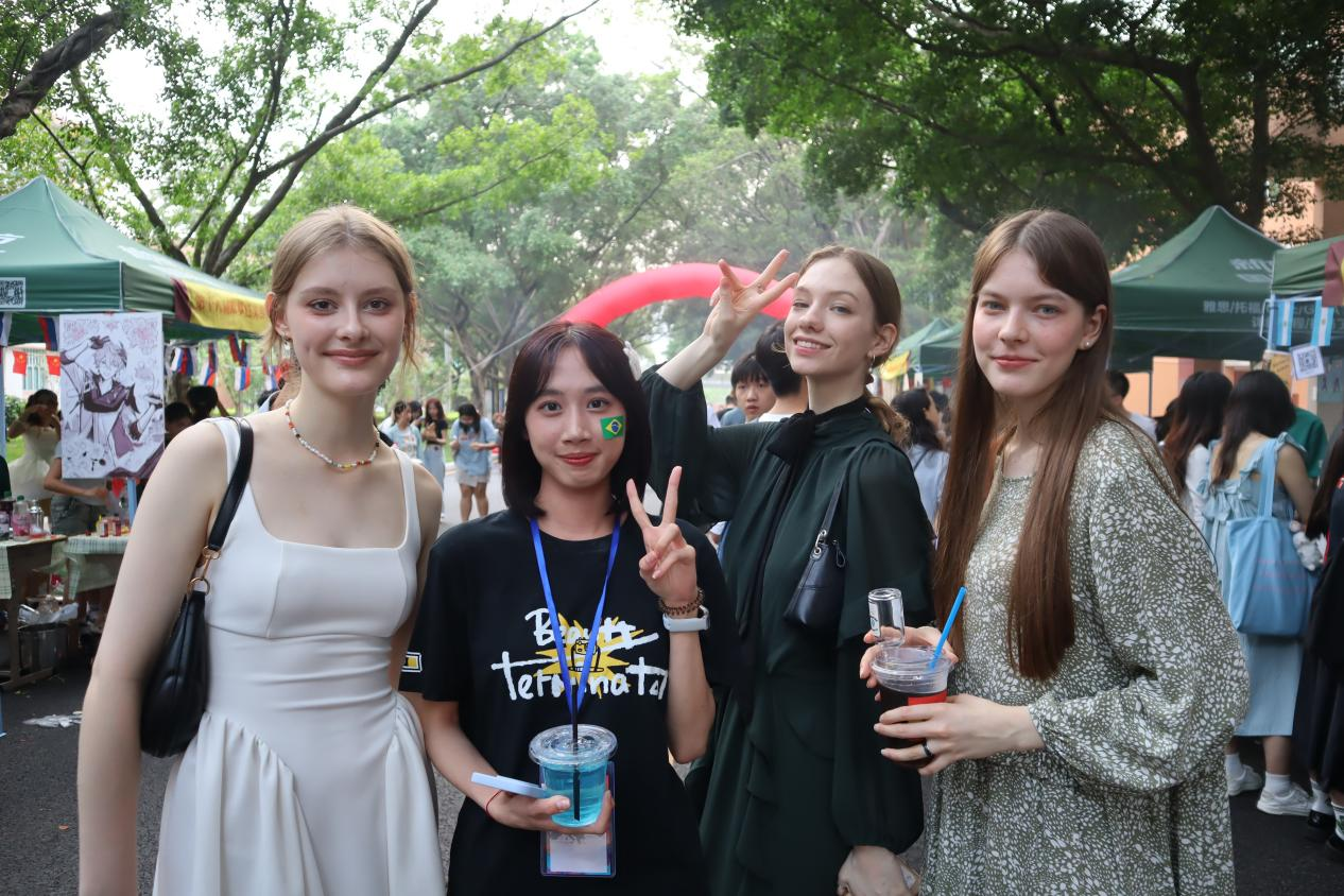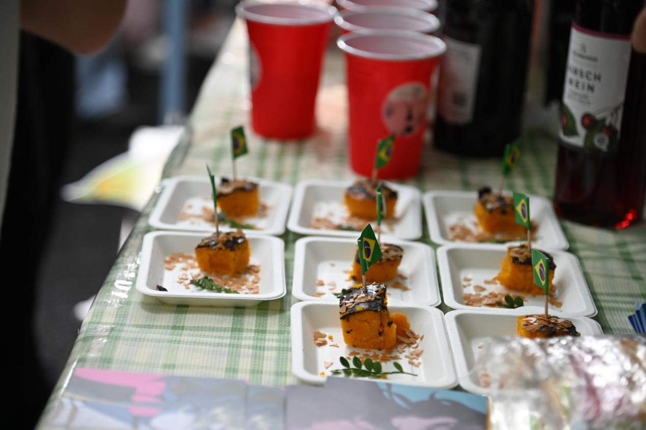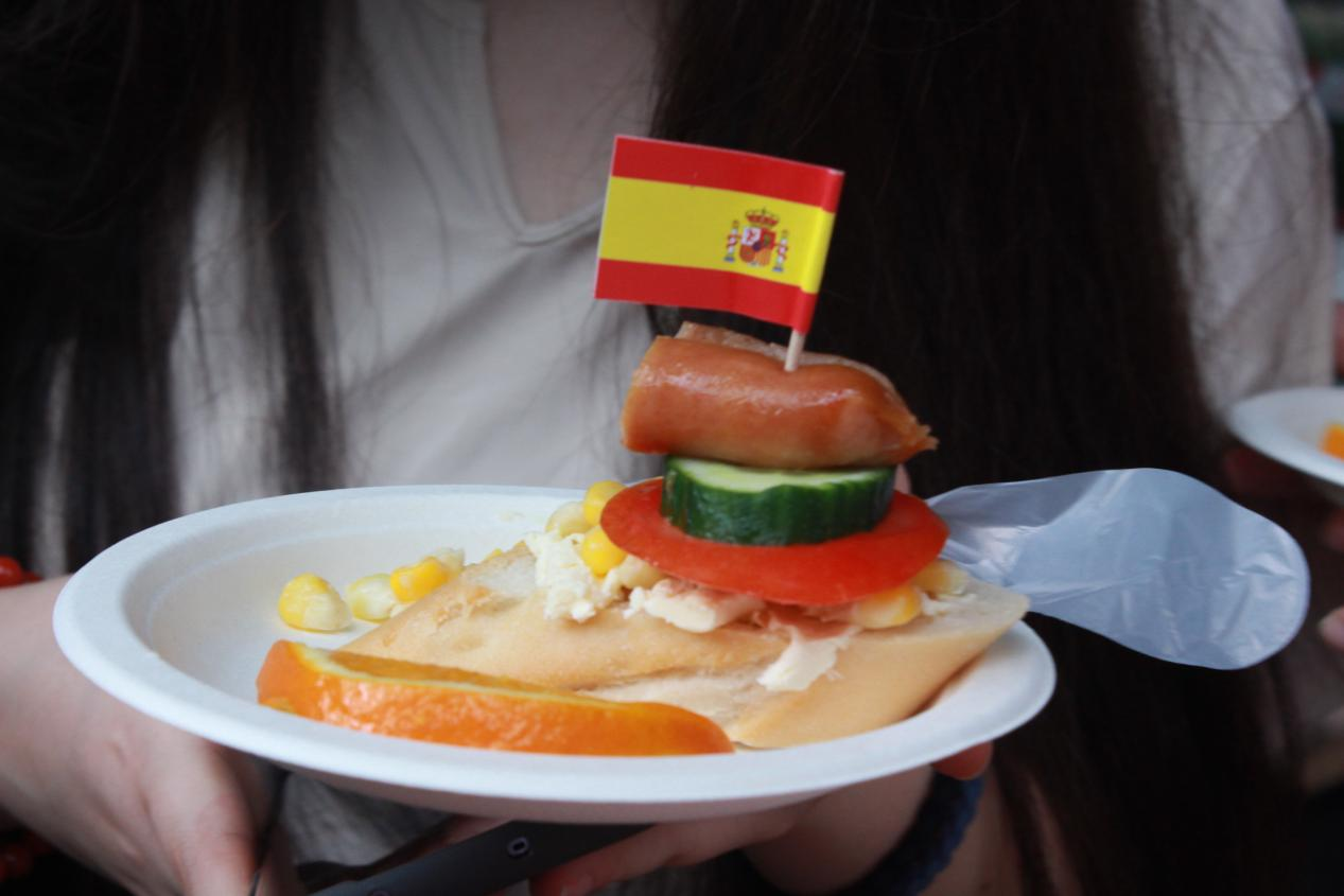 各语系学子精心准备的欧洲各国特色美食:香气四溢的俄罗斯列巴和红肠、西班牙的桑格利亚酒和火腿、葡萄牙的猪扒包和葡萄酒、意大利的意式千层酥和奶油意面等美食齐聚一堂,让师生们不出校门便能品尝到地道的欧洲风味。这不仅是一次味蕾的盛宴,更是一次文化的交流与碰撞。